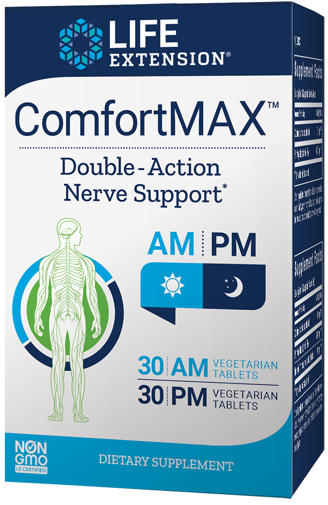 ComfortMAX™ has been formulated to be taken twice a day, one tablet in the morning and one tablet at night, right before bed, for day and night support. Each package of ComfortMAX™ provides a 30-day supply.
