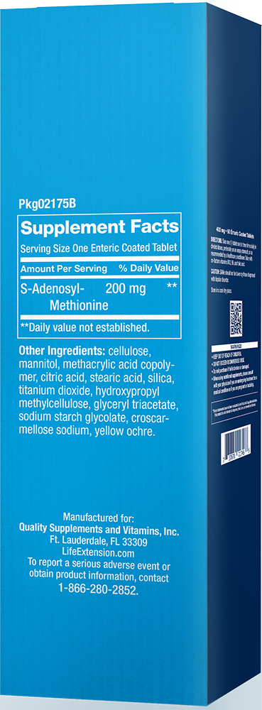 Serving Size 1 enteric coated vegetarian tablet S-Adenosyl-Methionine 200 mg Other ingredients: cellulose, methacrylic acid copolymer, mannitol, citric acid, titanium dioxide, stearic acid, silica, hydroxypropyl methylcellulose, glyceryl triacetate, sodium starch glycolate, croscarmellose sodium, yellow ochre. Non-GMO