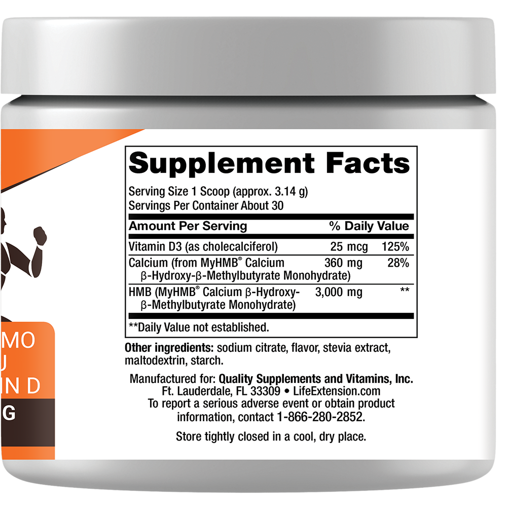 HMB and Older Adults: In a 24-week, randomized, placebo-controlled study, adults 65 years and older were divided into an exercise group and a non-exercise group. Both groups took either 3 g of HMB twice a day or a placebo. The non-exercise group that took HMB showed signs of improved muscle health — but the exercise group's results were even better, improving measurements of muscle function and lean mass.1,2