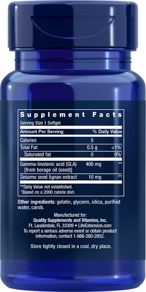 Numerous studies document GLA’s multiple health effects. Enhancing this supplement with sesame lignans enables GLA to work much better in the body, increasing the benefit of supplemental GLA.