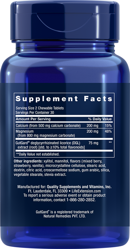 Research indicates that chewable calcium also supports the strong, healthy muscle movement of swallowing that keeps digestive fluids in their rightful place, helping to block the backward flow of fluid from the stomach.10