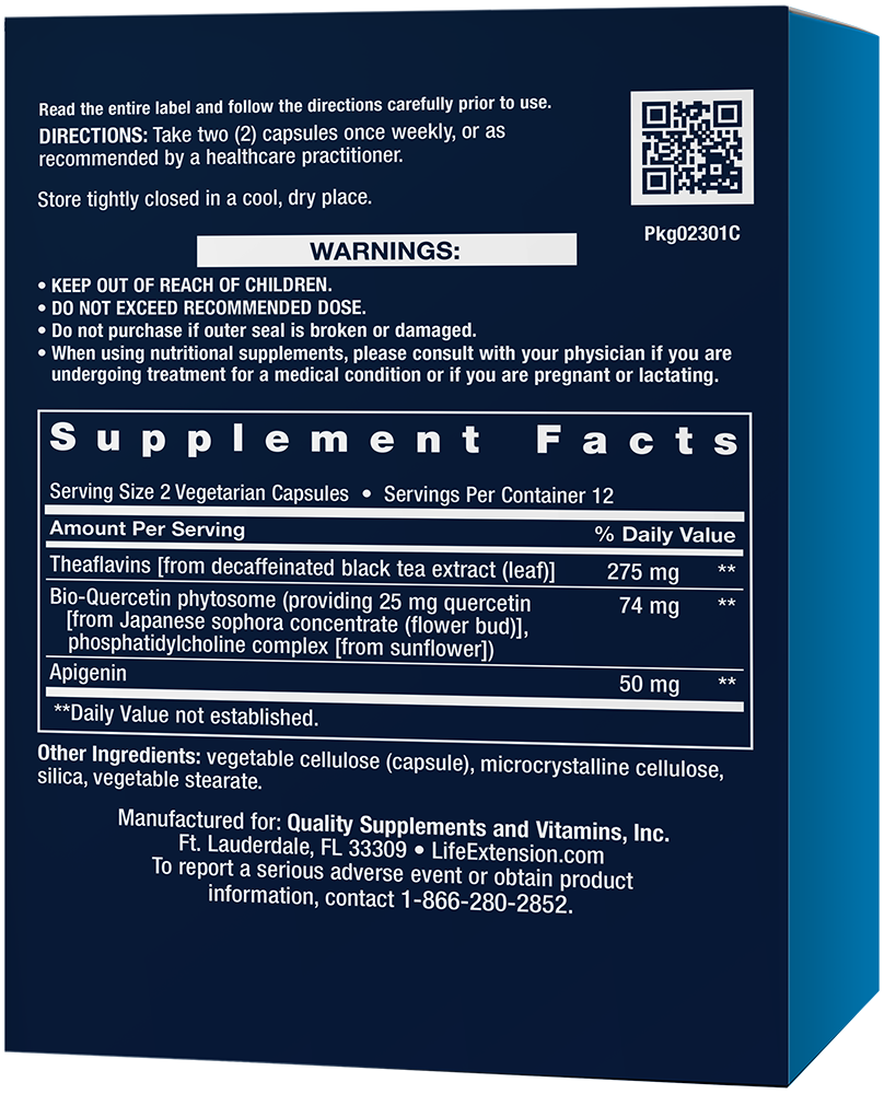 Life Extension has identified apigenin, a natural flavonoid, as a powerful addition to our Senolytic Activator formula. Quercetin and theaflavins from black tea target senescent cells, but not all of them.