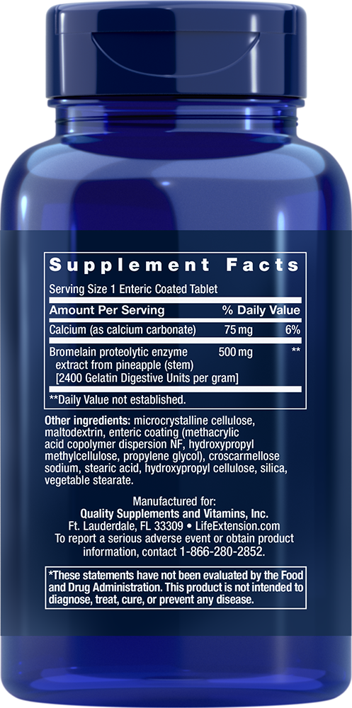 Bromelain has to be enteric coated so that it will not be activated in the stomach and used as a digestive enzyme. Enteric-coated bromelain tablets pass into the small intestine, where the bromelain is absorbed into the bloodstream to provide systemic benefits.4