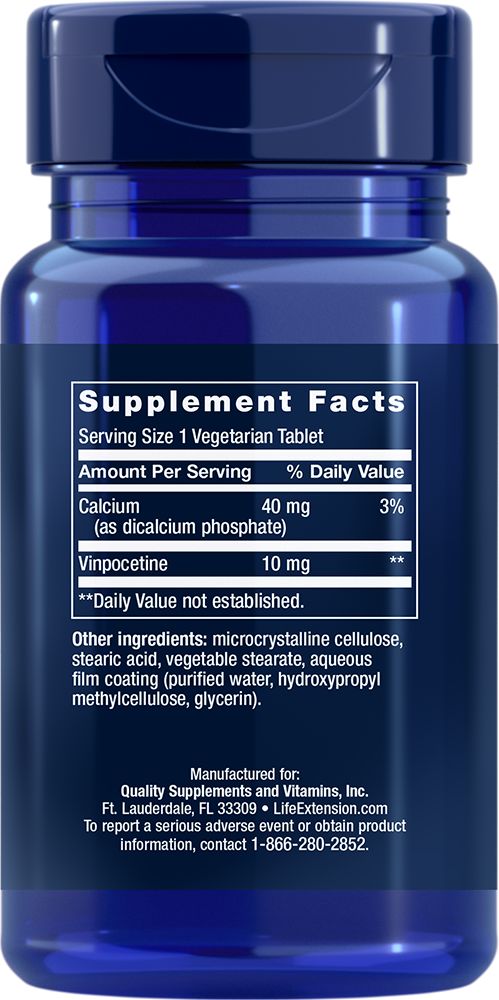 Several clinical trials have demonstrated that vinpocetine supplementation can support healthy brain blood flow, memory, concentration, and overall cognitive function.1-4