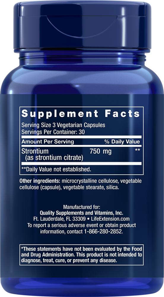 The suggested daily serving of 3 vegetarian capsules supplies 750 mg of this vital trace mineral. Strontium Caps is part of a daily nutrient regimen for individuals in need of especially comprehensive bone health support.