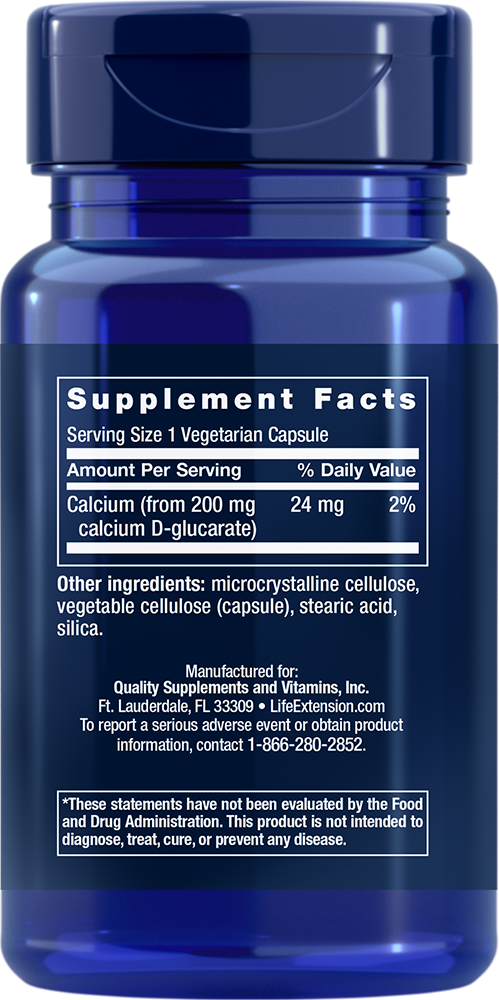 Serving Size 1 vegetarian capsule Calcium (from 200 mg calcium D-glucarate) 24 mg Other ingredients: microcrystalline cellulose, vegetable cellulose (capsule), stearic acid, silica. Non-GMO