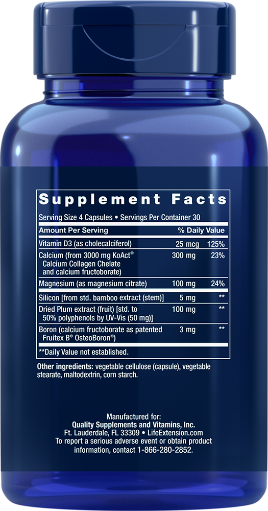 Boron is a trace mineral with beneficial effects on maintaining bone and joint strength.10 This formula contains patented FruiteX B® OsteoBoron®, a powerful form of boron made from a calcium/carbohydrate/boron complex similar to what is found in fruits and vegetables. FruiteX B® OsteoBoron® is more bioavailable than boron citrate, the nutrient used in most commercial bone building supplements.
