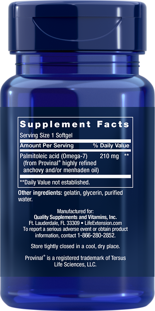 Our formula contains Provinal®, a highly refined, non-GMO, omega-7 fish oil. Provinal® is concentrated to 50 percent palmitoleic acid for maximum potency.