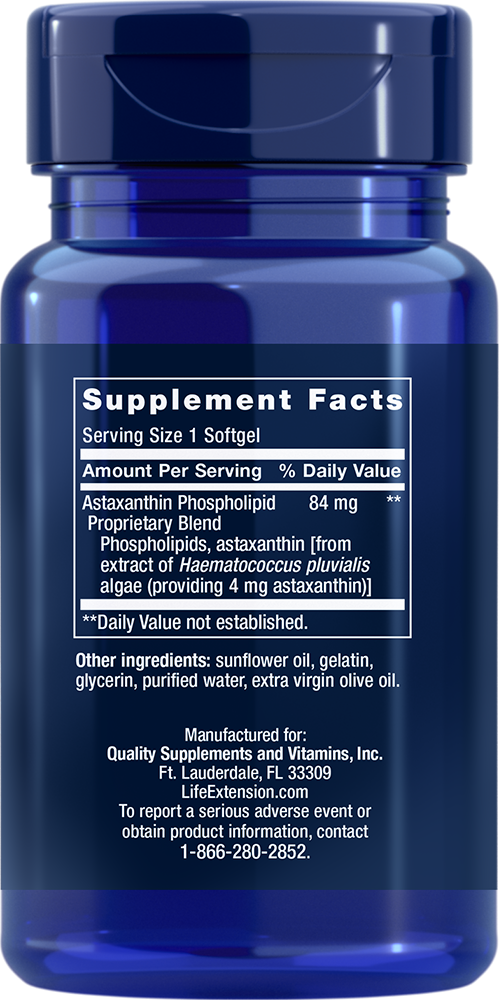 Astaxanthin is a fat-soluble nutrient, so it is crucial to obtain it in a highly absorbable form. To optimize absorption, we’ve blended 4 mg of astaxanthin with a proprietary 80 mg blend of four phospholipids.