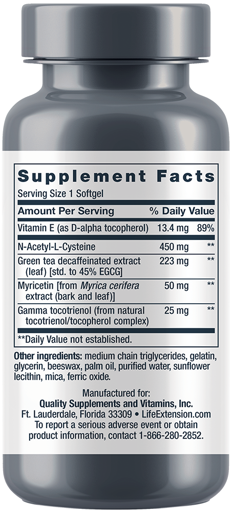 Insilico Medicine’s computerized A.I. analysis identified N-acetyl-L-cysteine (NAC), the potent green tea polyphenol EGCG, gamma-tocotrienol and myricetin, a naturally occurring antioxidant found in berries, fruits and herbs, as powerful "geroprotector" nutrients which can help protect the body from the effects of cellular senescence. These compounds were then scientifically tested and demonstrated efficacy at inhibiting signs of cellular senescence.1,2