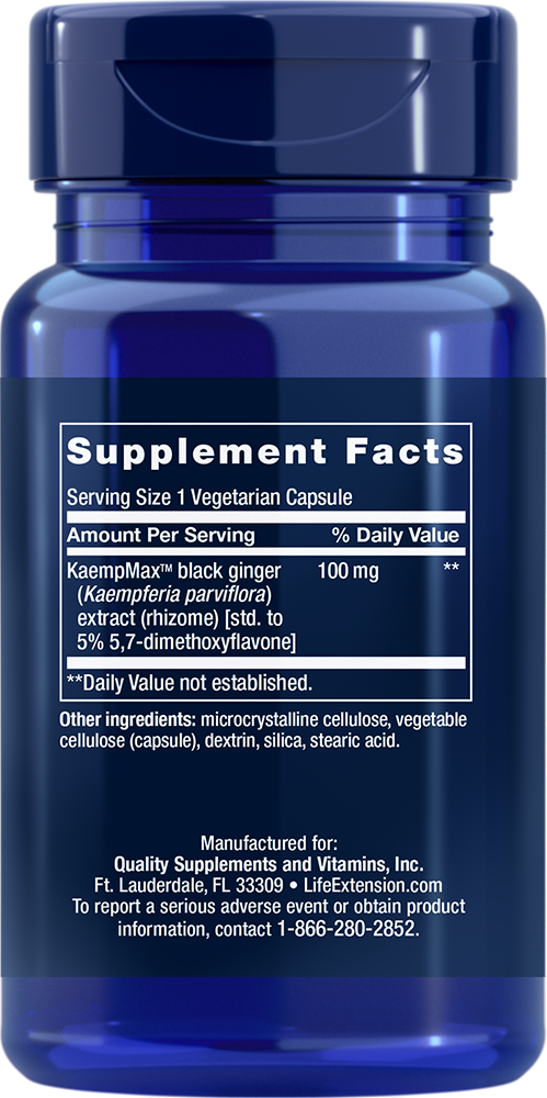 In an eight-week randomized, double-blind clinical study, K. parviflora extract promoted a healthy male sexual response as compared to placebo.2 Impressed by these results, formulators at Life Extension® set out to confirm the study's findings. In our own clinical study, subjects taking KaempMax™ K. parviflora extract standardized to 5% of the active compound, 7-dimethoxyflavone, for 30 days reported healthy sexual function and satisfaction.1